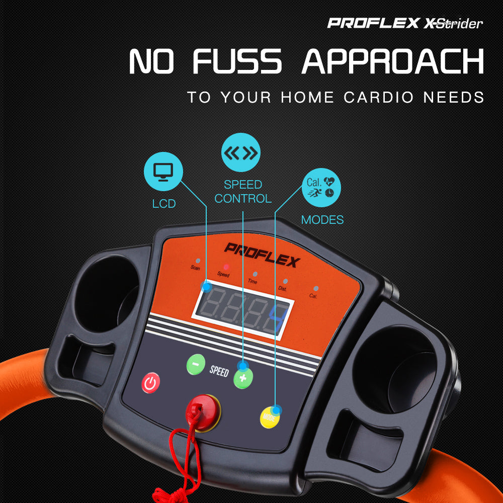 The NEW PROFLEX X-Strider treadmill is a practical, results driven weight loss machine. It brings the quality and reliability built into all PROFLEX products. There's no excuses to get started on your fitness journey right now - order your very own X-Strider today!