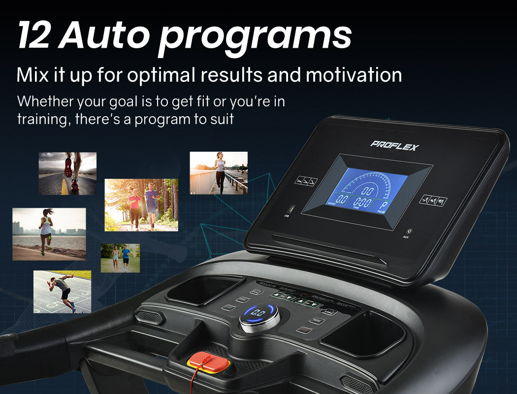 PROFLEX Electric Treadmill Auto Incline Foldable Run Machine 480MM Belt Home Gym Fitness Large